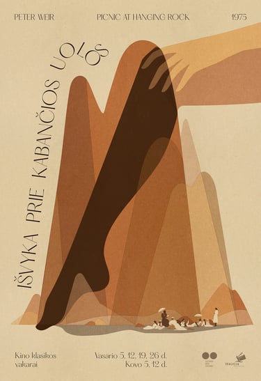I was asked by Skalvija cinema centre to create a poster for the 1975 film “Picnic at Hanging Rock” which will be on screen once again during months of Feb and March 2023.
