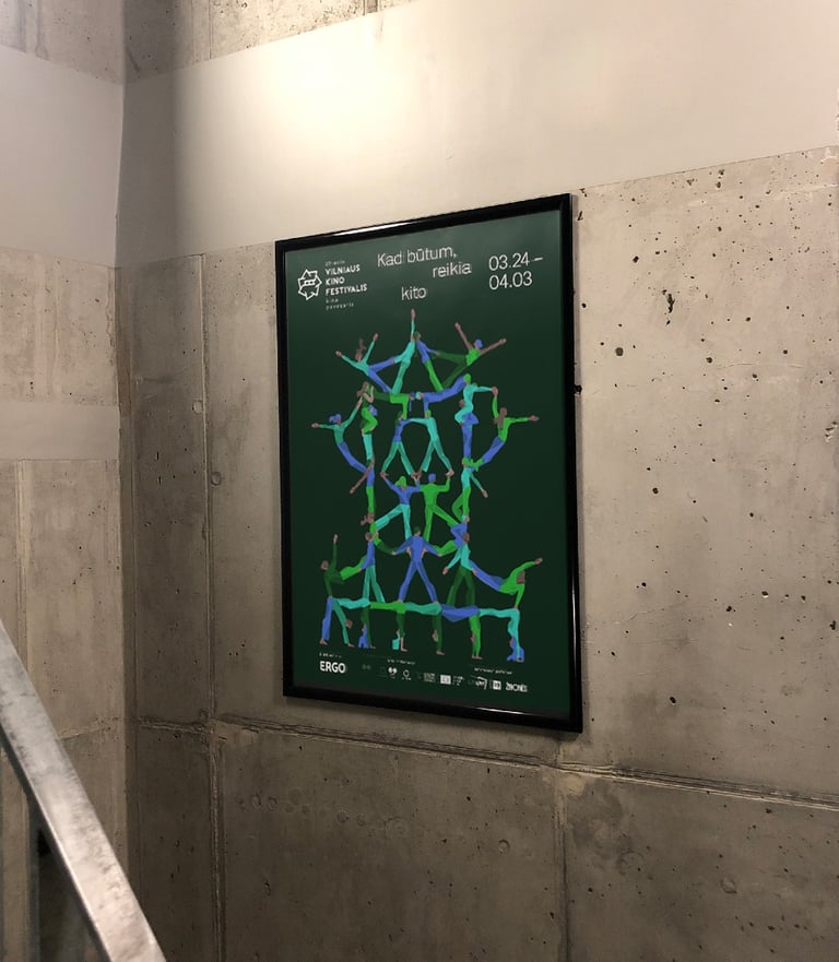 This year (2022) Kino pavasaris slogan is “Kad būtum, reikia kito” (To exist you coexist). Time and time again we are convinced that we are all connected, inter-winded and responsible for other people and the environment. The aim was to demonstrate this ecosystem of individuals and the impossible beautiful things we can create. Human pyramids are the chosen example as the impossible becomes possible.