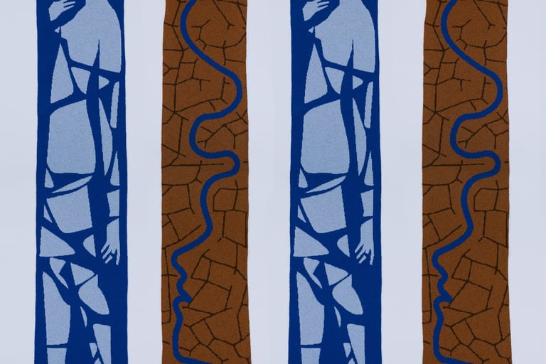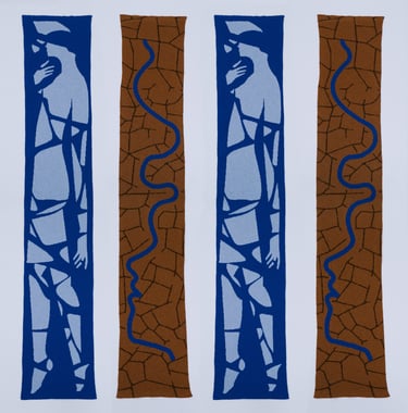 Melting ice woman and river with ends became scarfs.