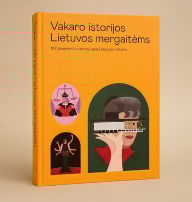 „Vakaro istorijos Lietuvos mergaitėms“ – collection of 100 stories about extraordinary Lithuanian women gathered in one yellow book. Together with many Lithuanian great illustrators out of hundred selected women I have illustrated the following: architect Elena Nijolė Bučiūtė, conductor Mirga Gražinytė-Tyla, art historian, writer Kristina Sabaliauskaitė, journalist - diplomat Magdalena Avietėnaitė, warrior Emilija Pliaterytė, taste journalist Beata Nicholson, theatre director Dalia Ibelhauptaitė, scientist Urtė Neniškytė.