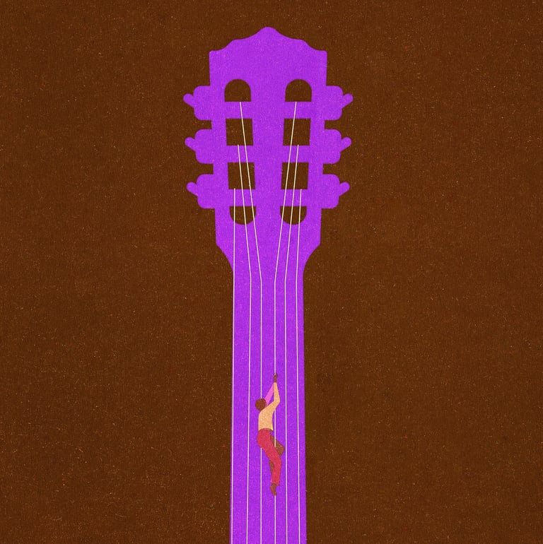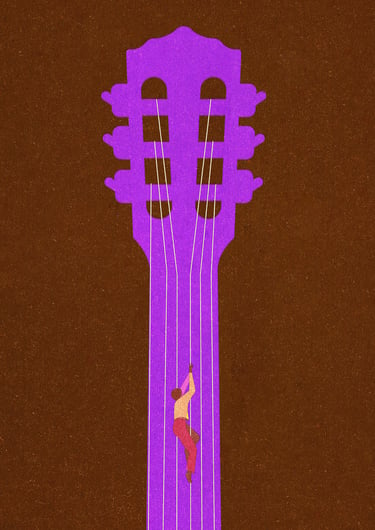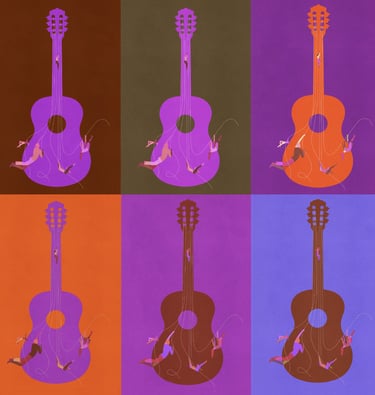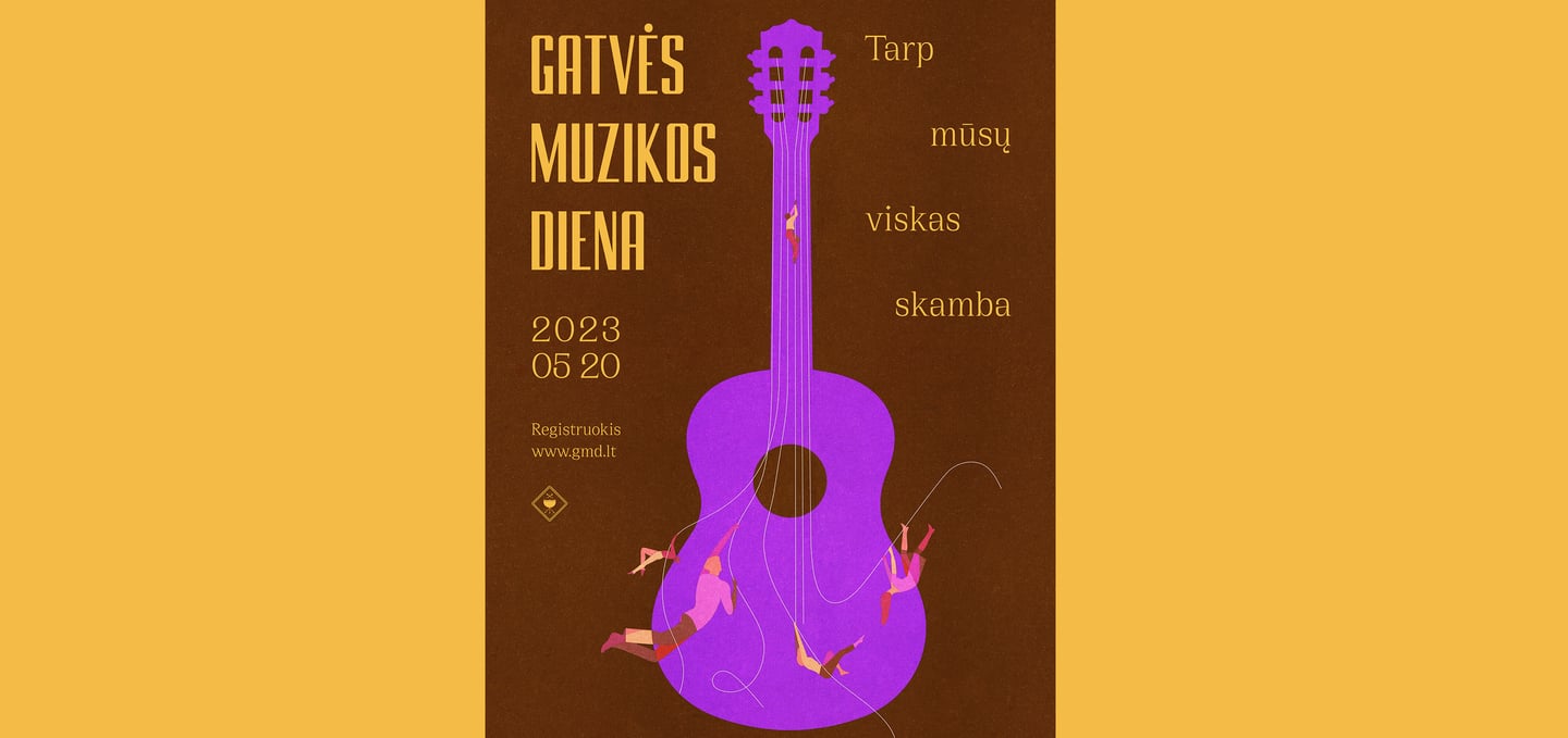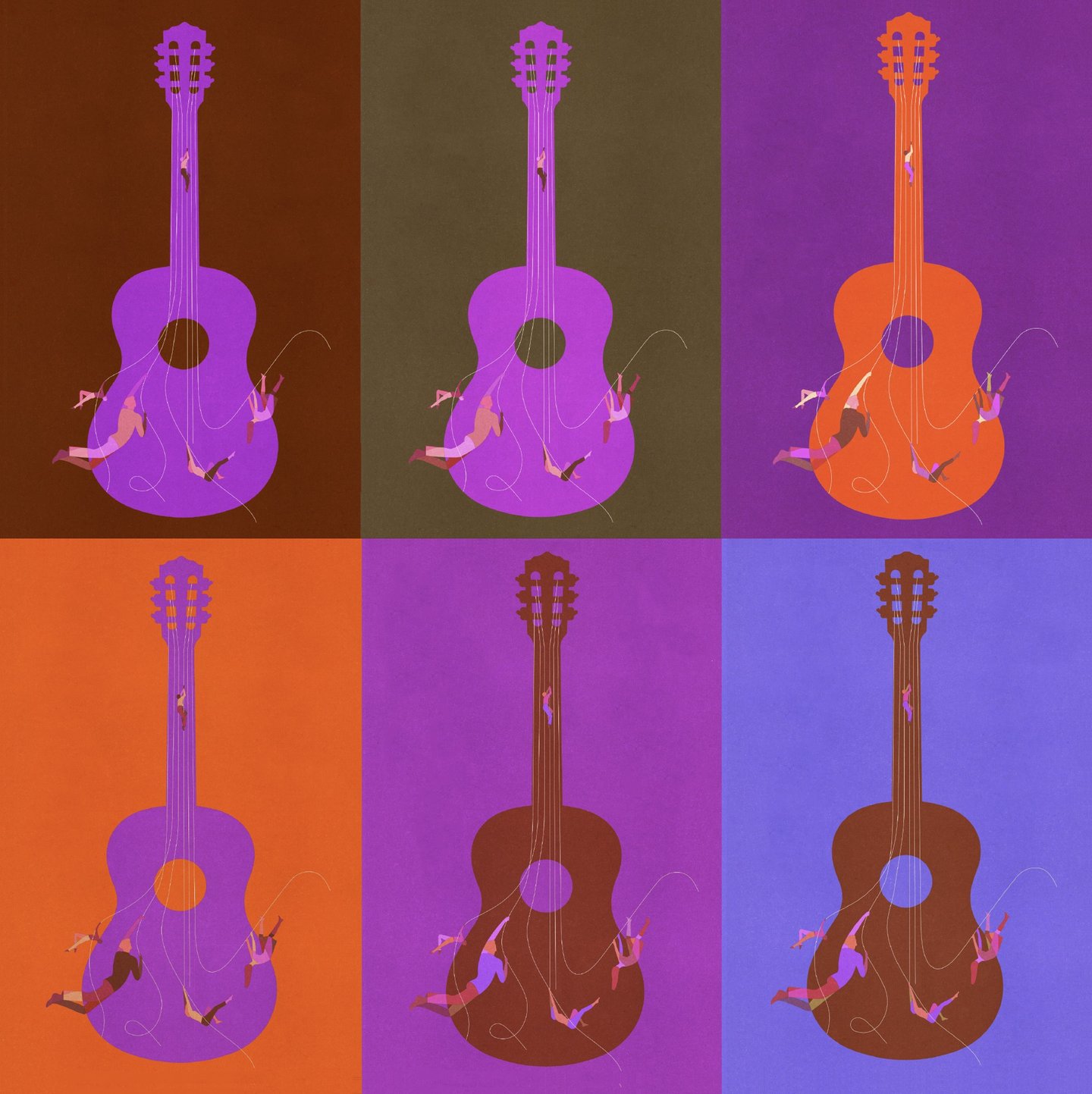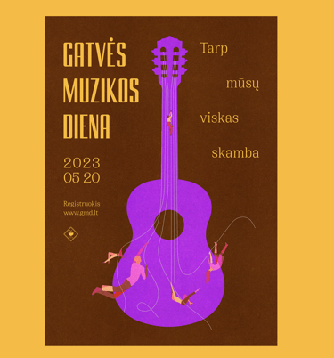 Illustration for the 2023 Street Music Day. Was fun to play with this years’ slogan (Everything sounds between us) and the purple guitar.
